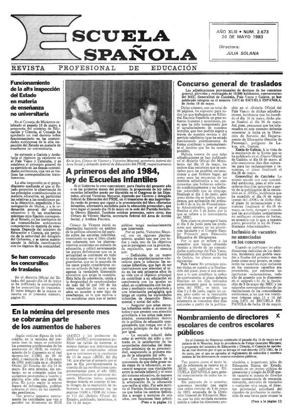- Título: Escuela española. Año XLIII, núm. 2673, 26 de mayo de 1983 (Formato PDF)