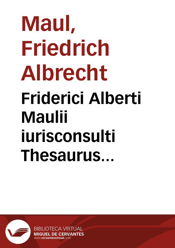 - Título: Friderici Alberti Maulii iurisconsulti Thesaurus theorico-practicus :