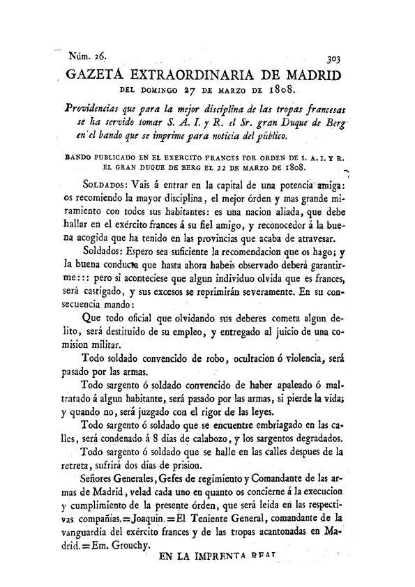 - Título: Gazeta de Madrid. 1808. Núm. 26, 27 de marzo de 1808 (Formato PDF)