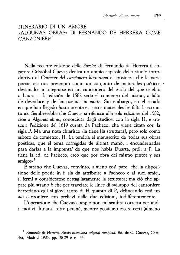 - Título: Itinerario di un amore. "Algunas obras" di Fernando de Herrera come canzoniere / Inoria Pepe Sarno (Formato PDF)