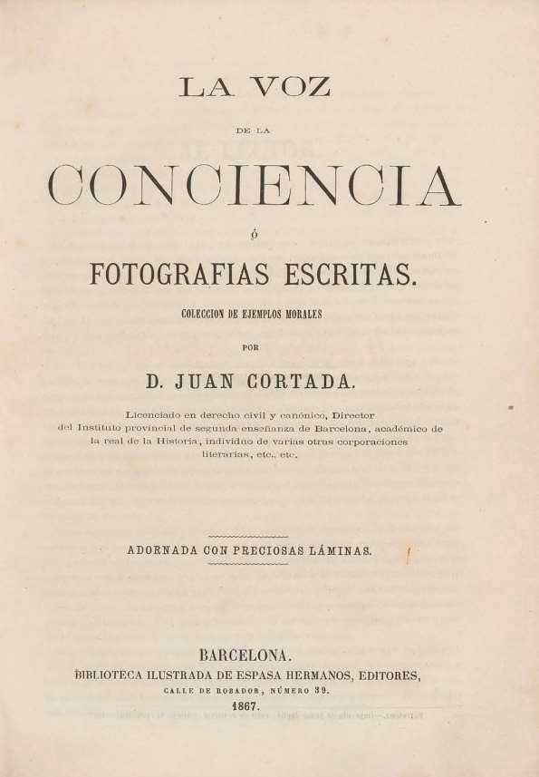 - Título: La voz de la conciencia, o fotografías escrita : colección de ejemplos morales / por D. Juan Cortada (Formato PDF)