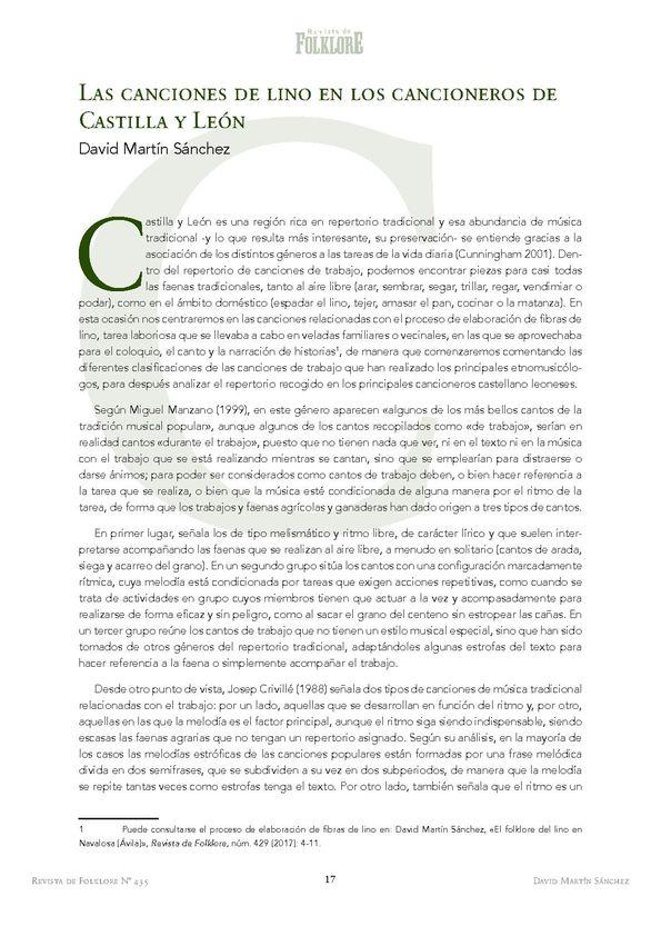 - Título: Las canciones de lino en los cancioneros de Castilla y León / David Martín Sánchez (Formato PDF)