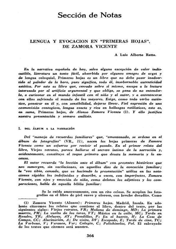 - Título: Lengua y evocación en "Primeras hojas", de Zamora Vicente / Armando F. Zubizarreta (Formato PDF)