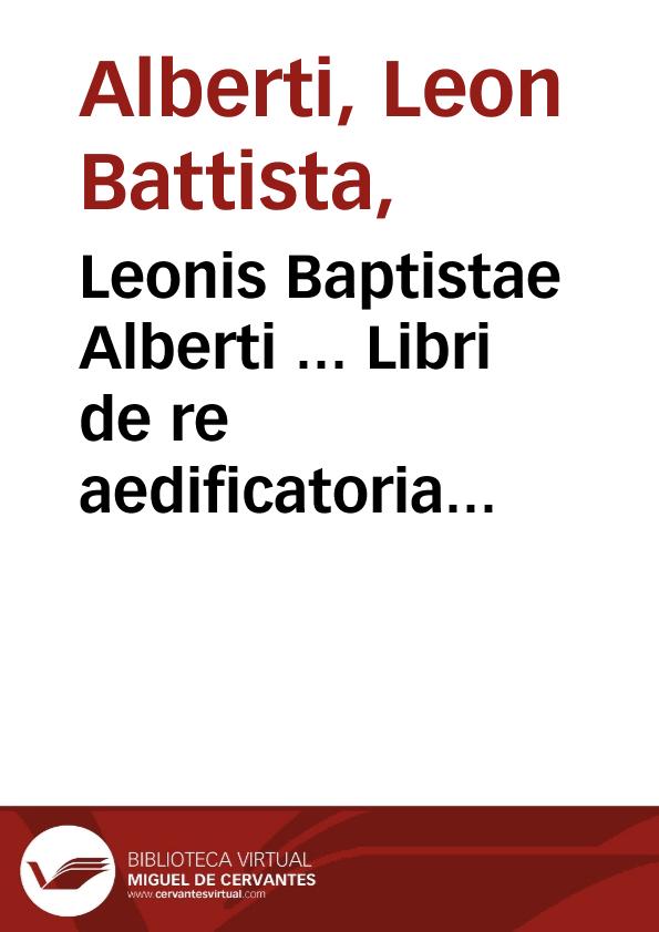 - Título: Leonis Baptistae Alberti ... Libri de re aedificatoria dece[m] opus integru[m] et absolutu[m] : diligenter q[uam] recognitum ...