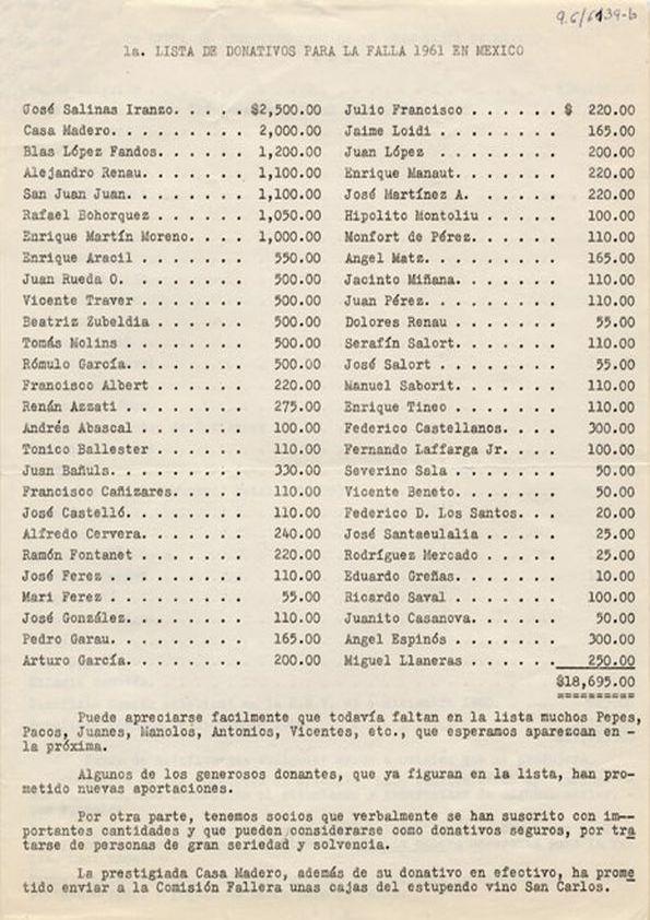 - Título: Lista de donativos para la falla 1961 en México (Formato PDF)