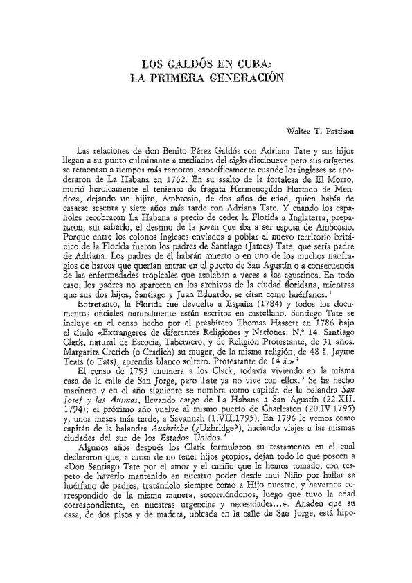- Título: Los Galdós en Cuba: La primera generación / Walter T. Pattison (Formato PDF)
