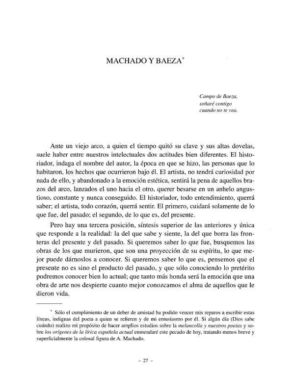 - Documento fuente: Antonio Machado y Baeza a través de la crítica / editor Antonio Chicharro Chamorro
