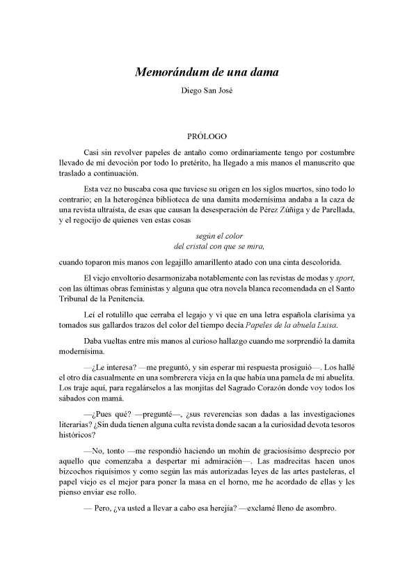 - Título: Memorándum de una dama / Diego San José (Formato PDF)