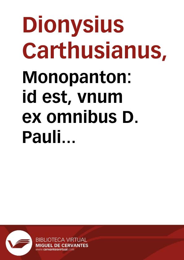 - Título: Monopanton : id est, vnum ex omnibus D. Pauli Epistolis per locos communes, seu certarum materiarum titulos, summo tum iudicio tum diligentia digestis / Dionysio Richel Carthusiano autore