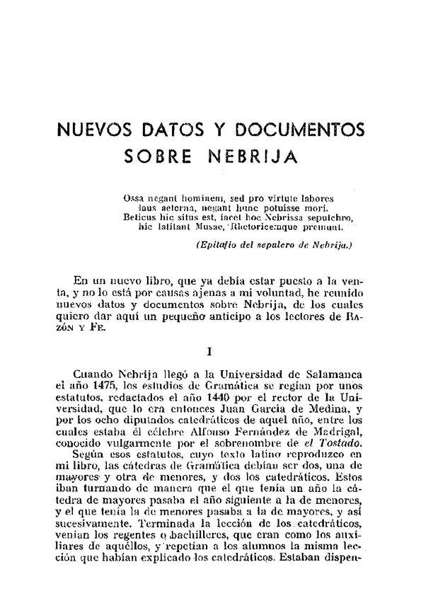 - Título: Nuevos datos y documentos sobre Nebrija / Félix G. Olmedo (Formato PDF)