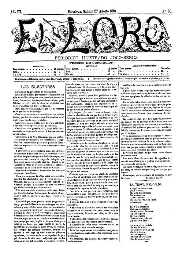 - Título: El Loro : periódico ilustrado joco-serio. Núm. 35, 27 de agosto de 1881 (Formato PDF)