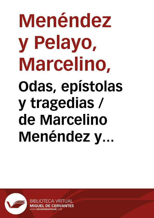 Odas, epístolas y tragedias / de Marcelino Menéndez y Pelayo; con una introducción de Juan Valera