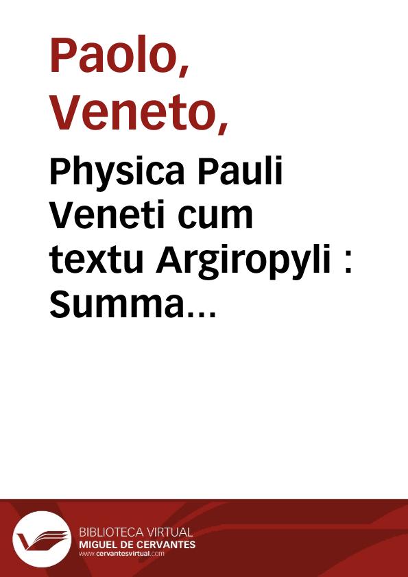 - Título: Physica Pauli Veneti cum textu Argiropyli : Summa philosophie naturalis... / Pauli Veneti mexima dilige[n]tia nuperrime recognita... Cum textu a Ioannes Argiropylo e greco in latinum converso. Adiecta sunt etiam ex Columella capita aliquot de Minimo ac Maximo naturali....