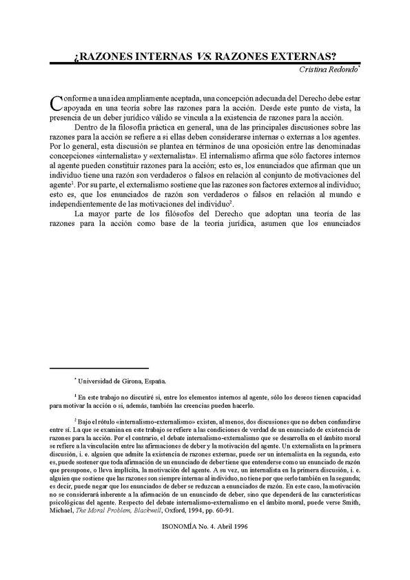 - Título: ¿Razones Internas vs. Razones Externas? / María Cristina Redondo (Formato PDF)