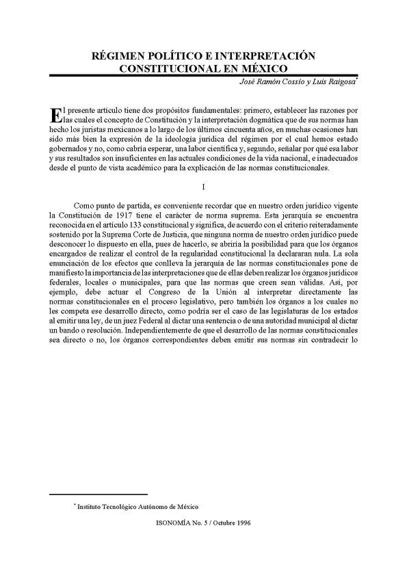 - Título: Régimen político e interpretación constitucional en México / José Ramón Cossío, Luis Raigosa (Formato PDF)