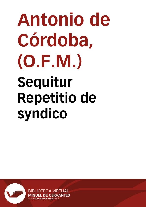 - Título: Sequitur Repetitio de syndico / per eundem Fratrem Antonium Cordub. auctorem Medullae Fratru Monorum aedita loco Quaestionis sextae decimae huius quarti capituli inserêda...