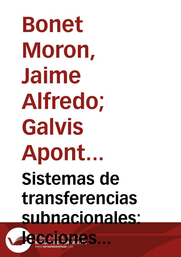 - Título: Sistemas de transferencias subnacionales: lecciones para una reforma en Colombia