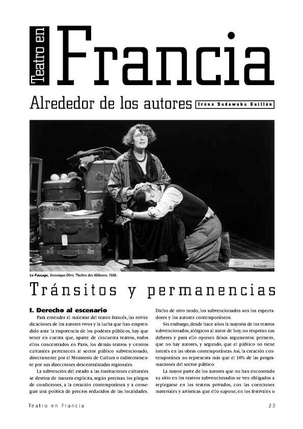 - Título: Teatro en Francia: alrededor de los autores / Irène Sadowska Guillón ; traducción S.M.B. (Formato PDF)