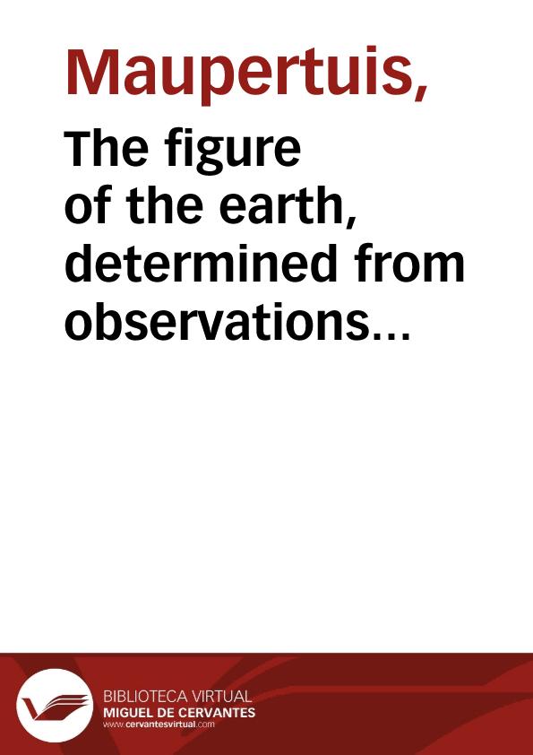 - Título: The figure of the earth, determined from observations made by order of the French King, at the polar circle / by Messrs. de Maupertuis, Camus, Clairaut, Le Monnier ... Translated from the French of M. de Maupertuis