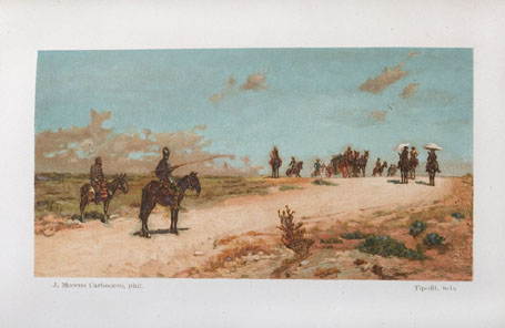 - Notas textuales: Inferior: "J. Moreno Carbonero, pint." / "Tip.Lit. Seix"